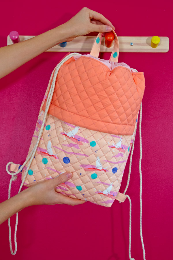 Colour: Pink background with blue, pink and white detail.
